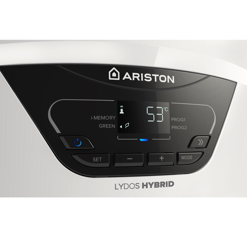 В сравнение с енергиен клас “B” на повечето съвремени бойлери, бойлерът ARISTON LYDOS HYBRID пести до 50% повече. Новата изключителна технология HYBRID INTELLIGENCE използва по най-добрия начин възобновяемата енергия с помощта на вградена термопомпа. ИЗПОЛЗВАЙТЕ ПО НАЙ-ДОБРИЯ НАЧИН КОМБИНАЦИЯТА МЕЖДУ ЕЛЕКТРИЧЕСКА И ТОПЛИННА ЕНЕРГИЯ ОТ ВЪЗОБНОВЯЕМИ ЕНЕРГИЙНИ ИЗТОЧНИЦИ.